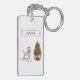 Grey Poodle Funny Christmas Dog with Tree Key Ring