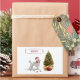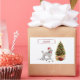 A joyful grey poodle looks with anticipation at the decorated Christmas tree. Filled with lights and ornaments with presents under the tree, excitement awaits! Cute gift to send on Christmas wishing happy holidays and a happy new year!