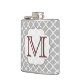 Grey Quarterfoil Lattice Quarter Foil Monogram Initial Personalised Custom Fabric Pattern Whiskey Flask