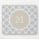 Grey Quatrefoil Pattern, Beige Monogram Mouse Pad