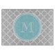 Grey Quatrefoil Pattern, Blue Monogram Cutting Board
