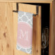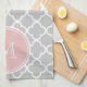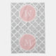 Grey Quatrefoil Pattern, Pink Monogram Tea Towel