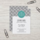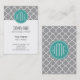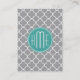 Grey Quatrefoil with Custom Mint Monogram Business Card