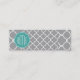 Grey Quatrefoil with Custom Mint Monogram Mini Business Card