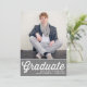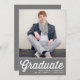 Invite guests to your event with this customisable photo graduation invitation. It features a retro bold script and classic typography. Personalise by adding your details. This grey graduation invitation is available in other cardstock and colours.