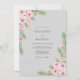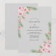This design features a soft grey background accented by delicate watercolor pink roses and evergreen pine branches. Small red berries add a touch of nature-inspired elegance, creating a tranquil and romantic mood for a cold-weather event. Watercolor textures bring a handcrafted feel to the botanical arrangements.