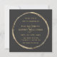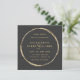 This wedding square invitation features a faux gold circle frame with an elegant ampersand and simple calligraphy with a grey background.