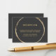 This wedding reception enclosure card features a faux gold circle frame and simple calligraphy with a grey background.
