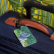 White and green Luggage Tag, essential for travelling.