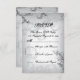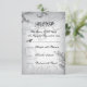 Vintage black grey scroll leaf 25th silver wedding anniversary RSVP response/reply card, featuring elegant leaf scrollwork in black on glowing grunge grey background. A classy, stylish invite suitable for a traditional silver wedding anniversary. It can also be used for weddings, birthdays and other occasions too.