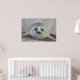 This image shows a grey seal pup lying on cement. At birth, pups are about 3-3.5 feet long from nose to tail and weigh about 33 pounds. They have a cream-coloured, natal lanugo coat that molts at 2-3 weeks old. Pups feed for about five minutes every five hours and gain weight rapidly on the high-fat milk. Pups gain about 5 pounds per day from their mother's rich milk but gain little, if any, length. | "Smithsonian" and the Smithsonian logo are registered trademarks owned by Smithsonian Instituti