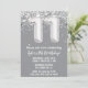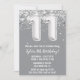 Grey and silver 11th Birthday invitation 11 birthday party invitation for a black white silver with modern script writing and fun foil balloons.