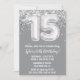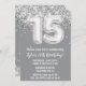 Grey and silver 15th birthday party invitation 15 birthday party invitation for a boy or girl with modern script writing and fun foil balloons.