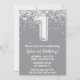 Grey Silver 1st Birthday Party Invitation