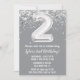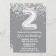 Grey and silver 2th birthday party invitation age 2 birthday party invitation with glitter and modern script writing and fun foil balloons.