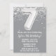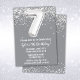 Grey Silver 7th Birthday Party Invitation
