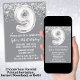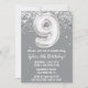 Grey and silver 9th Birthday party invitation age 9 birthday invitation with black white silver with modern script writing and fun foil balloons.
