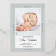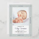Grey and silver foil adopted baby announcement, introducing your adopted baby with chosen, loved, wanted, adopted in silver text surrounding a photo of your baby. Their name in a silver foil script.