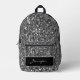 Grey silver glitters sparkles black Custom name Printed Backpack. Beautiful girly dark Black and White faux glitter sparkles. Please note we use photo of sparkles, not actual glitter! No messy glitter to the touch!