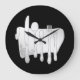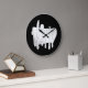 A clock with a set of silverware in shades of grey on a sleek black background and no numbers. Click Customise It to add your name or message, change background colours, even save your designs for later.