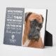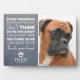 Adorable pet memorial plaque featuring a faux grey slate background, a photo of your pet, and the sympathy quote that reads "When tomorrow starts without me, Don't think we're far apart. For every time you think of me, I am right here inside your heart", a pawprint, their name, and dates. This wonderful rememberance plaque makes a great gift or tribute piece to have in a home for all the family to treasure.