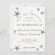 Grey Starfish Blue Shells Beach Wedding Invitation