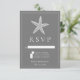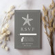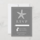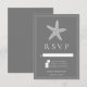 Complete your wedding stationery suite with this elegant Grey Starfish Wedding RSVP Card, designed for seaside weddings and coastal celebrations. Featuring a subtle starfish, this nautical design pairs beautifully with modern typography and a simple layout, creating a clean and sophisticated look perfect for seaside nuptials. Thoughtfully crafted for both style and function, this wedding response card makes it easy for guests to reply while enhancing your overall coastal theme. Personalise with your event details to match your wedding perfectly, and be sure to review your design using the preview option to view your product prior to purchase so every detail is just right.