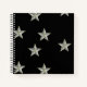 Grey stars pattern on black notebook