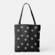 Grey stars pattern on black tote bag