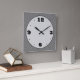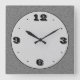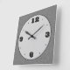An atmospheric clock in stone grey with a light grey centre. Complementing this design is a trendy numeral font in black and grey. Available in round and square shapes.