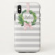 Grey stripe Christmas wreath monogram Case-Mate iPhone Case
