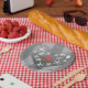 Grey Stripe Coastal Theme Seashell Starfish Heart Paper Plate