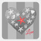 Grey Stripe Coastal Theme Seashell Starfish Heart Square Sticker