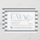 Cute and hip baby shower invitation with grey and white stripes with blue accents.