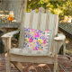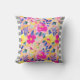 Grey and White Striped Trim Pink Floral Pattern Reversible Throw Pillow