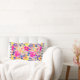 Grey Striped Trim Pink Floral Throw Pillow