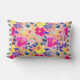 Grey and White Striped Trim Pink Floral Pattern Reversible Lumbar Throw Pillow