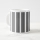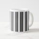 A corporate mug with grey stripes in light and dark on white. Click Customise It to change background colours, pick your fonts and add custom text and more, even save your design for later.