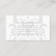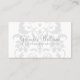 Simple with professional elegance describes this sophisticated Subtle Damask Business Card with a light grey damask flourish background. This trendy and modern profile card is perfect for an upscale boutique or a creative field such as interior design and can be easily customised with your business details. For more customisation options, click on the Customise It button.