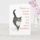 A humourous notecard with a grey tabby cat wanting its breakfast from a watercolour painting by Judy Adamson. Purrfect for a cat-lover!