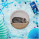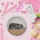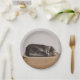 Cute grey tabby cat sleeping on cardboard box birthday paper plates. Beautiful cosy cat photography digitally painted. For cat lovers. Great party supplies. Modern, cool, chic, trendy. Look for matching products in my store collection. Image copywrite Marg Seregelyi Photography.