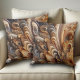 Add a touch of sophistication to the living room or bedroom with this throw pillow, which features AI-generated styling of floral and feather sculpted patterns in grey and tan tones.