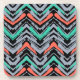 Grey, Teal, And Coral Hand Drawn Chevron Pattern Coaster
