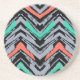 Grey, Teal, And Coral Hand Drawn Chevron Pattern Coaster