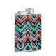 Grey, Teal, And Coral Hand Drawn Chevron Pattern Hip Flask
