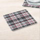 Grey textured tartan plaid square paper coaster