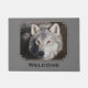 Face of a grey timber wolf with bright orange eyes. Realistic artwork created from an original oil painting by equine and wildlife artist Crista S. Forest.