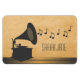 Quirky and unique Vintage Gramophone Premium Flexi Magnet in dark grey featuring a silhouette of an old-fashioned gramophone and a cascade of musical notes on a digital art rendered paper background. This chic magnet will add a vintage flair to any magnetic surface and is perfect for any music lover. Easy to customise, simply personalise with the text of your choosing. Click on the "Customise It" button to find additional personalisation options.
