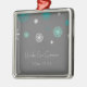 Winter Wedding custom name and date ornament in elegant and modern dark charcoal grey, turquoise aqua teal blue and white festive snowflakes pattern. A stylish christmas gift for family and friends or to decorate your christmas tree or home for the holidays. The perfect way to remember your winter wedding day.