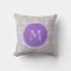 Grey White Anchors Pattern, Purple Monogram Cushion